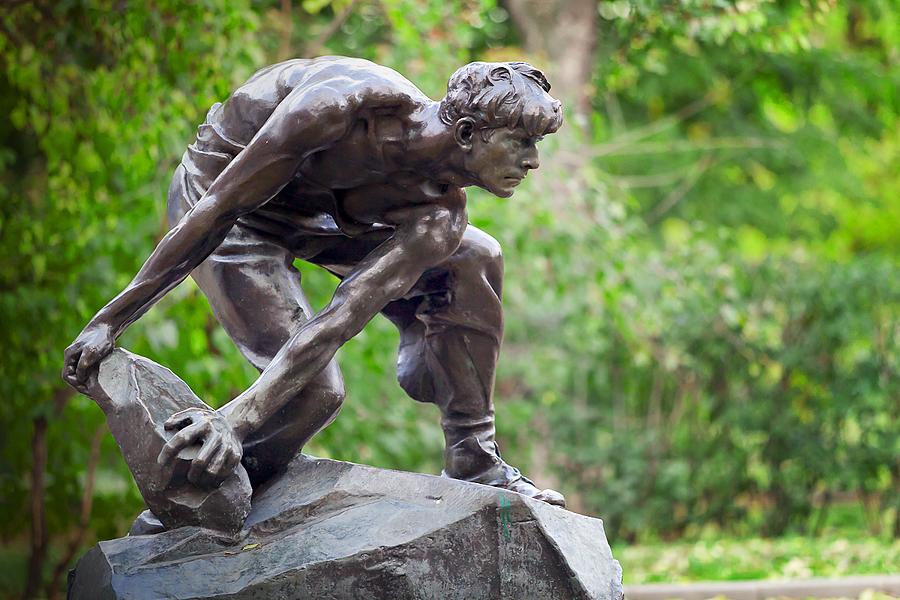БУЛЫЖНИК изображен на скульптурной композиции "Булыжник - оружие пролетариата", в парке Декабрьского восстания неподалёку от станции метро "Улица 1905 года" в Москве.