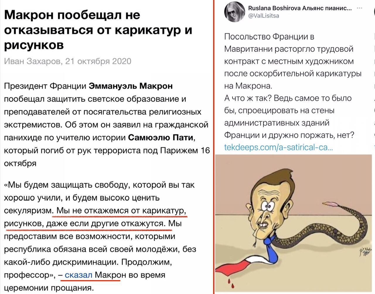 так не было там толп в таком количестве что у мусульман - сужу по картинкам из ящика. Мусульмане запруживали улицы, жгли флаги Франции, топтали портреты Макрона, орали про месть и т.д... А что у Ефремова? там требовали его посадить. Это с одной стороны, а с другой полубезумные бабки фантазировали про марсиан или ФСБ, управляющих машиной и поэтому требовали Ефремова освободить... Большая разница, знаешь ли...